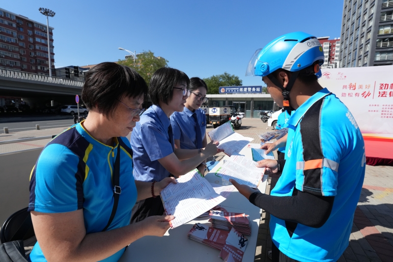 啟動儀式后,現場開展了內容豐富、形式多樣的首次駐點服務活動。區檢察院檢察官聚焦勞動關系認定、交通事故責任劃分等熱點問題,通過典型案例深入淺出地講解法律知識,引導新就業群體依法維權、理性表達訴求。朝陽交通支隊民警結合“非機動車十大不文明行為”典型案例,深入剖析交通違法成本,倡導文明騎行、安全配送理念。“暖新護航”法律服務項目合作單位在暖新驛站設立專門咨詢台,為新就業群體提供“一對一”專業法律解答。區司法局、區檢察院等單位同步開展普法宣傳,發放法律知識手冊。