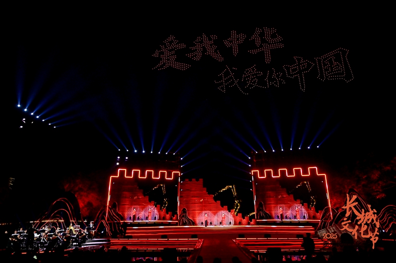 文藝盛典以“自然基底—歷史對話—國際友好—和合共生”為敘事脈絡,分為四個篇章展開,涵蓋原創舞蹈、國樂演奏、音舞詩畫等多種藝術形式。通過中英歌手聯袂演繹長城經典曲目,知名學者深度品讀長城文化內涵,藝術名家更以筆墨意象勾勒長城風骨﹔中國科學院科學家與青少年展開“科學城會客廳”對話,京津冀三地文旅推薦官共同啟動水長城聯動儀式等精彩篇章,展現長城作為文明弧光的深厚內涵。