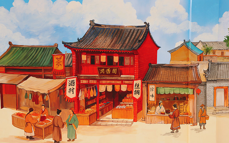 駐足凝望,金代街市的熙攘煙火、明代城門的巍峨雄姿與當代都市的繁華盛景在牆面次第鋪陳,宛如一座串聯歷史記憶與現實活力的“視覺橋梁”。在筆墨勾勒的時光流轉中,觀眾既能品味歷史的厚重積澱,更能感受時代的蓬勃脈動。