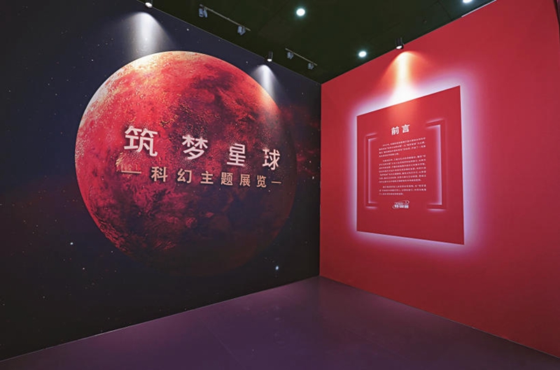 “筑夢星球”科幻主題展覽展示面積約200平方米,精心設置了“熒惑探針——火星大氣改造計劃”“泰坦星燃料基地——星際遠航的補給站”“蒲宮——星際探索的移動母艦”三大核心展區,聚焦於未來行星改造、能源利用與星際旅行等方向,通過浪漫恢弘的圖文設計、立體美學的沙盤模型、引人入勝的互動裝置和生動精致的衍生文創,帶領觀眾逐步深入星際探索的科幻世界。