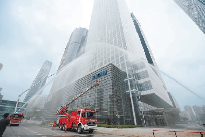 CBD管委会相关负责人说,目前,CBD区域内超百米建筑项目40余个,高层、超高层建筑密集。一直以来,CBD管委会协同消防、安全等职能部门和属地办事处联合开展工作,通过培训、演练、宣传、参观、体验等方式,不断提升CBD工作人群和项目管理单位的安全意识和防范化解消防隐患能力。本报记者 程功 摄