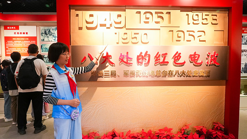 据介绍,国庆假期期间,市民游客可现场拓印金色“福”字,体验传统技艺。带娃出行的家长,不妨锁定八大处红色电波展室——这里藏着亲子游的“独家密码”。市民可与孩子一同坐在老式发报机前,亲手破译密电码,还能敲击按键发送“祝福祖国”的电波,完成体验后可领取限量版红色语录帆布包。