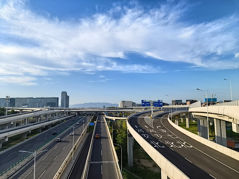 此次改造工程西起海淀区友谊路,东至昌平区宏福西路(现状黄平西路),道路红线宽度60米至110米,采用“快速高架桥+地面辅路”双层布局,以京新、京藏高速为中心向两侧延伸,其中,与京藏高速相交处的莘庄桥为五层全互通立交。工程在原有双向4-6车道基础上进行扩容,建成后实现主路双向6车道、辅路双向4-6车道的通行能力。其中辅路已于2025年5月通车并保持良好运行,此次主路放行后,将全面释放道路通行能力,实现“回天地区”与中关村科学城、永丰产业基地等重点功能区之间快速交通联系,并与京新、京藏高速共同形成高快速路网体系,进一步完善北部地区干线路网结构。