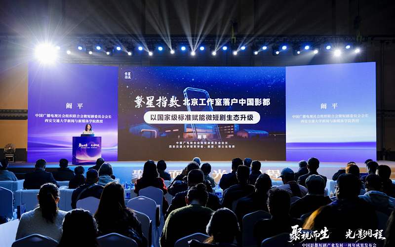 活动现场,多项最新成果集中亮相。中国电影基金会新媒体影视人才发展专项基金发布了“光影管家影视服务平台”,为行业提供优质人才、影视基地、后期制作等全链条服务保障。专项基金将聚焦新媒体影视领域,发掘、培养、扶持一批具有国际视野、创新精神、专业素养的新媒体影视人才。中国广播电视社会组织联合会微短剧委员会会长、西安交通大学新闻与新媒体学院教授阚平领衔“繁星指数”北京工作室落户中国影都,以国家级标准赋能微短剧生态升级。