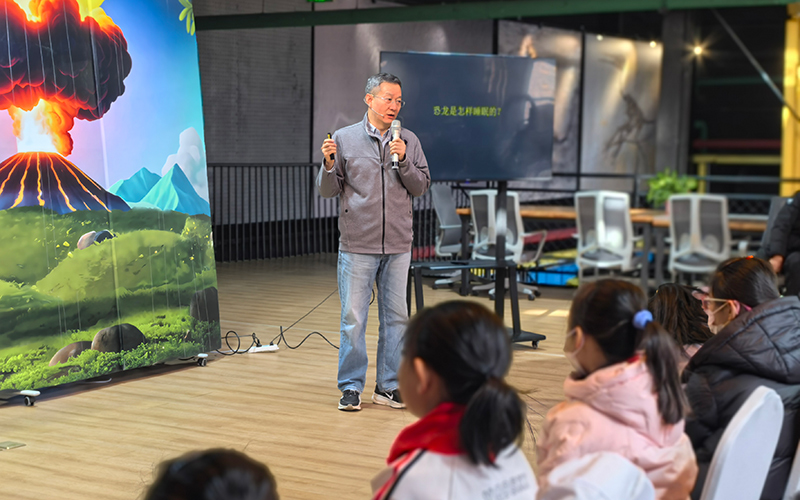 人民网北京12月1日电 (记者尹星云)11月30日,北京世园古生物研学基地“科学公益讲堂”开讲,中国科学院院士、古生物学家徐星以“恐龙化石大发现”为主题,为线上、线下观众带来了一场穿越亿万年时光的科学之旅。本次讲座旨在通过顶尖科学家的专业解读,拉近古生物学与公众的距离,激发青少年对科学探索的兴趣,助力全民科学素养提升。