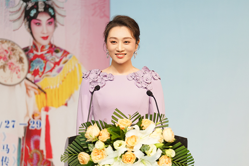 现场,路洁介绍巡演相关情况。北京京剧院供图