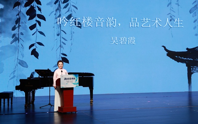 活动现场,吴碧霞以《红楼梦》为引,结合书中的人物情感、诗词意境与东方审美精神,分享文学经典对其艺术感受与舞台表达的深远影响。她结合自身多年的舞台实践与教学经历,阐述在民族声乐、美声演唱及跨界艺术探索中的体悟,强调艺术创作应植根于传统文化,在不断感受经典中提升审美境界,在守正与创新中形成独特的艺术表达。