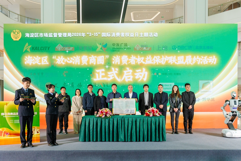 人民网北京3月16日电 (记者董兆瑞)3月15日,海淀区“3·15”国际消费者权益日活动举办。活动上,北京首个区域性、多商圈联合的消费者权益保护自律组织——海淀区“放心消费商圈”消费者权益保护联盟正式成立,32个商业综合体集体加入。
