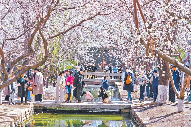 春和景明,万物复苏。位于北京东城前门东区的三里河公园迎来最美花季,迎春、山桃、玉兰次第绽放,碧水蜿蜒、水穿街巷,水韵与胡同肌理相融,成为市民游客春日踏青、拍照打卡的热门目的地和京城春日文旅亮点。记者 方非摄
