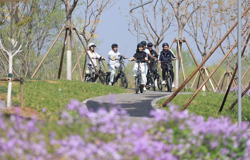 除了连片的二月兰,坝河蓄滞洪区沿线还有序种植了1.15万株涵盖39种乡土观赏树种的苗木,打造出层次丰富、季相分明的生态绿廊,不仅春日有紫花缀岸,更将成为秋季市民打卡坝河的最美风景线。与此同时,还最大限度保留了区域内原有的成片林带与大树小岛,为白鹭、夜鹭等野生鸟类营造了稳定的栖息环境,与周边农田共同形成了拥有完整食物链、充满野趣的生态空间,实现了水利工程与自然生态的和谐共生。